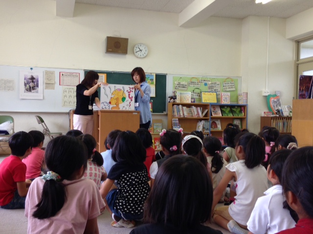 生駒小学校での読み聞かせの場に招待していただき、としょックスの方が紙芝居を披露されました。前回の活動報告で報告した、幼稚園・保育園向けのエコ体験用紙芝居も披露していただき、子どもたちは真剣な眼差しで、両方の物語を楽しんでくれていました。